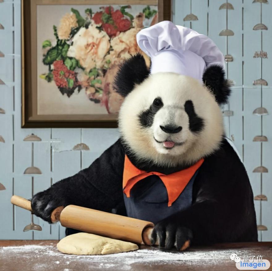 比如《一只非常快乐的毛茸熊猫打扮成了在厨房里做面团的厨师的高对比度画像,他身后的墙上还有一幅画了鲜花的画》…(啊先让我喘口气)