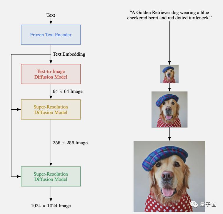 图像生成部分则是一系列扩散模型,先生成低分辨率图像,再逐级超采样。