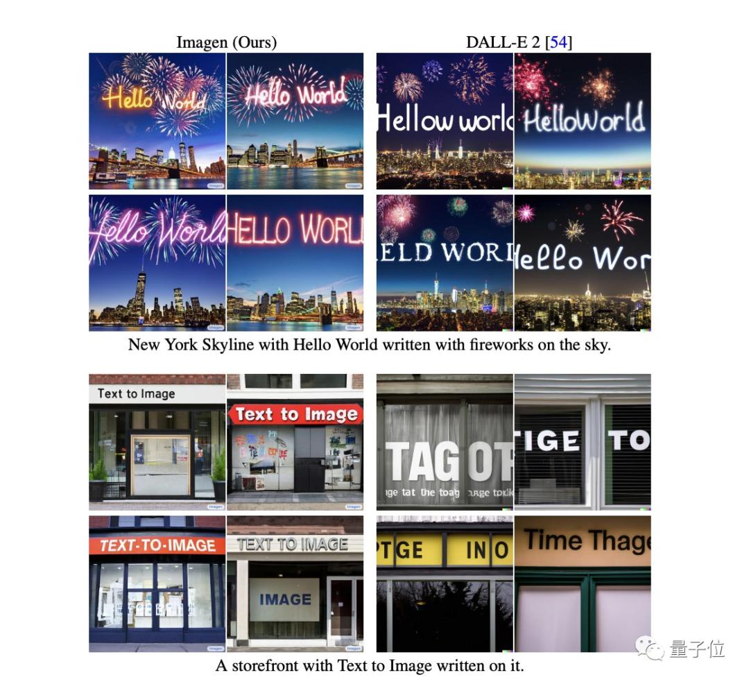 对于要求图像中出现文字的,也是Imagen做得更好。