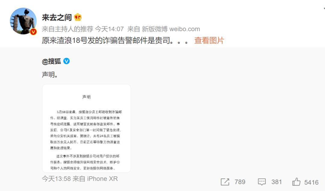 原标题:《搜狐全体员工遭诈骗?公司最新回应!》