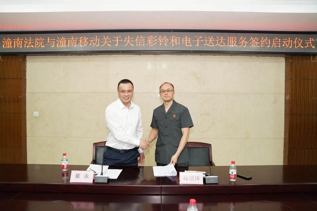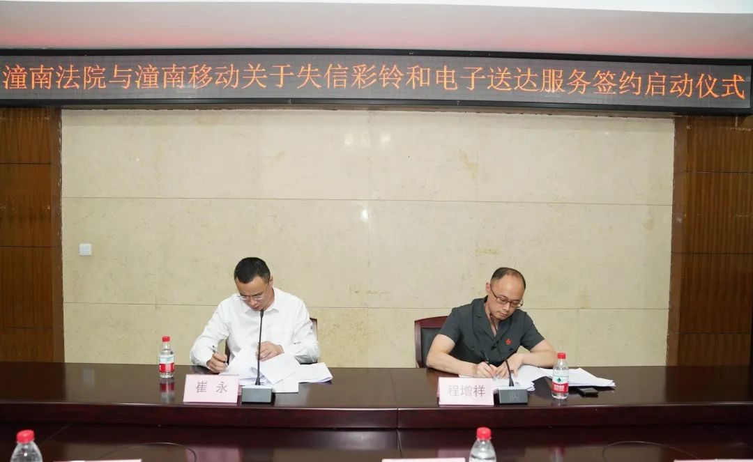 原标题:《【争创示范法院】潼南法院与中国移动重庆潼南分公司签约开通“失信彩铃”和电子送达服务》