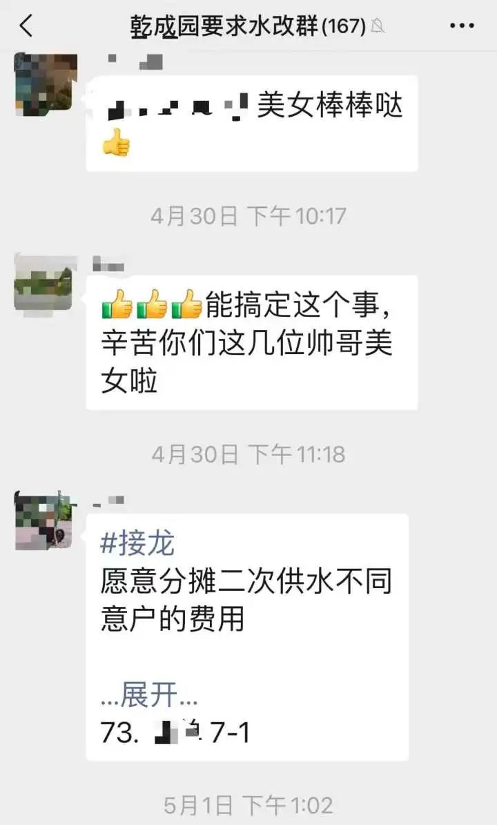 “他们对费用问题的担心,我们也进行了多次沟通。为了让他们放心,我们决定签个书面保证,如果二次水改需要业主出钱的,他们那部分费用,其他业主众筹,这样的话就不用他们出一分钱,最后差不多80户业主表示,愿意参与众筹。”