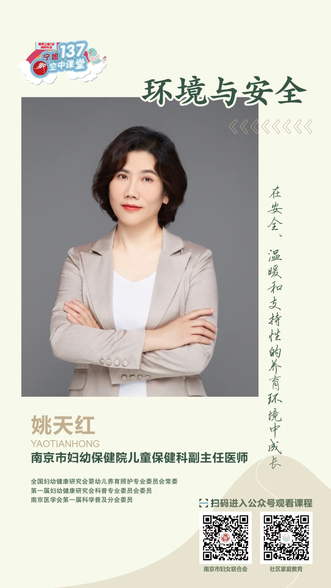 本期《家庭教育专家说》由南京市妇幼保健院儿童保健科副主任医师姚天红与家长朋友们分享“环境与安全”。