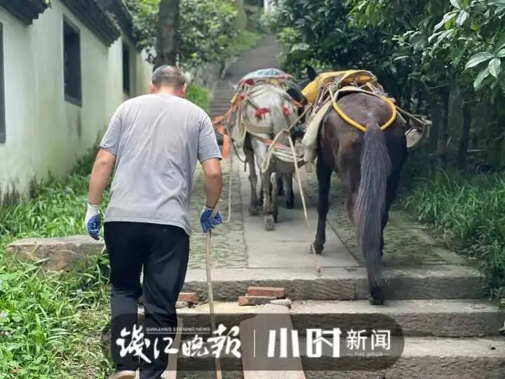 上个月,他们来到杭州葛岭抱朴道院,负责将石料运上山、垃圾运到山下,3头骡子是运输重物的主要工具,也是陪伴卢江华半个人生的“同伴”。
