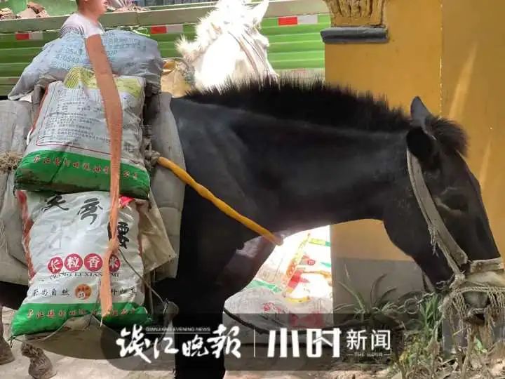 那是真的累呀。3袋水泥压到骡子身上,那天它们肯定也受了不少苦。