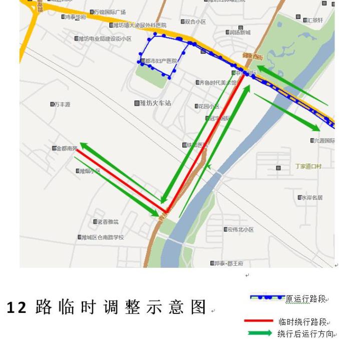 12路下行方向:车辆从九龙涧森林公园东门发车,沿原线路运行至健康街青年路路口后,沿青年路-仓南街至火车站南广场(上行方向反之亦然),在火车站南广场停靠调度发车,不再运行健康街(青年路至向阳路)、和平路(健康街至公交专用通道)、向阳路(健康街至公交专用通道)路段及公交专用通道。