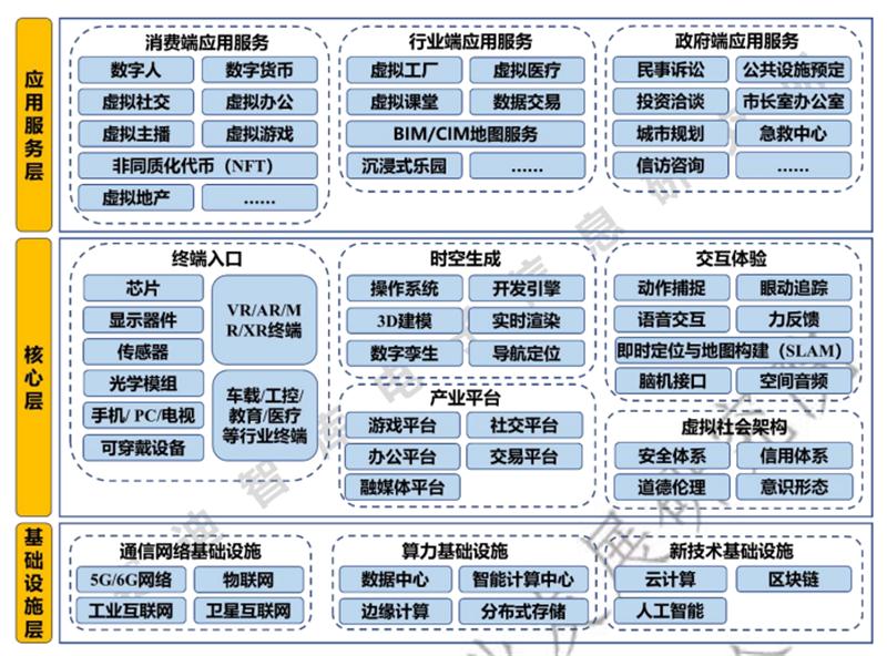 “元宇宙”产业链分为基础设施层、核心层和应用服务层。