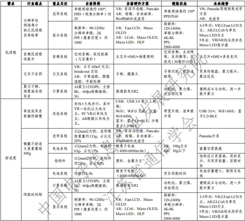 ▲虚拟现实头显当前痛点、相关硬件配置及未来趋势