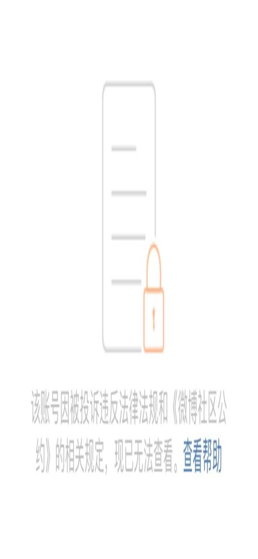页面上只有冷冰冰的显示:“该账号因被投诉违反法律法规和《微博社区公约》的相关规定,现已无法查看。”