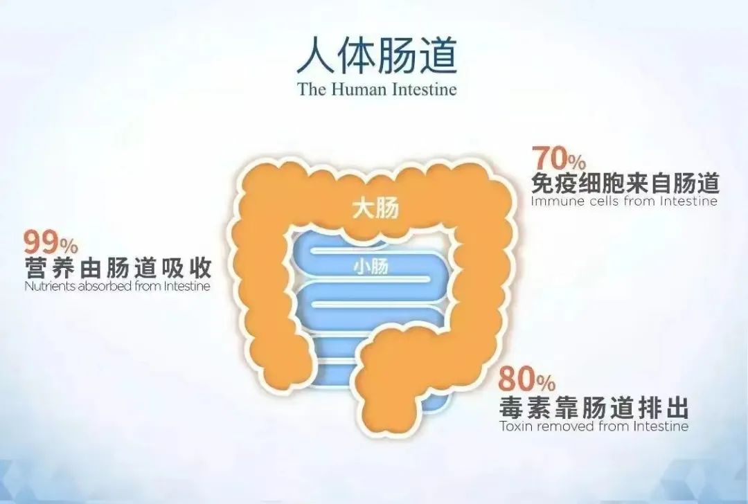 肠道集结了人体70%以上的免疫细胞(位于肠黏膜内),是人体最大的免疫器官。