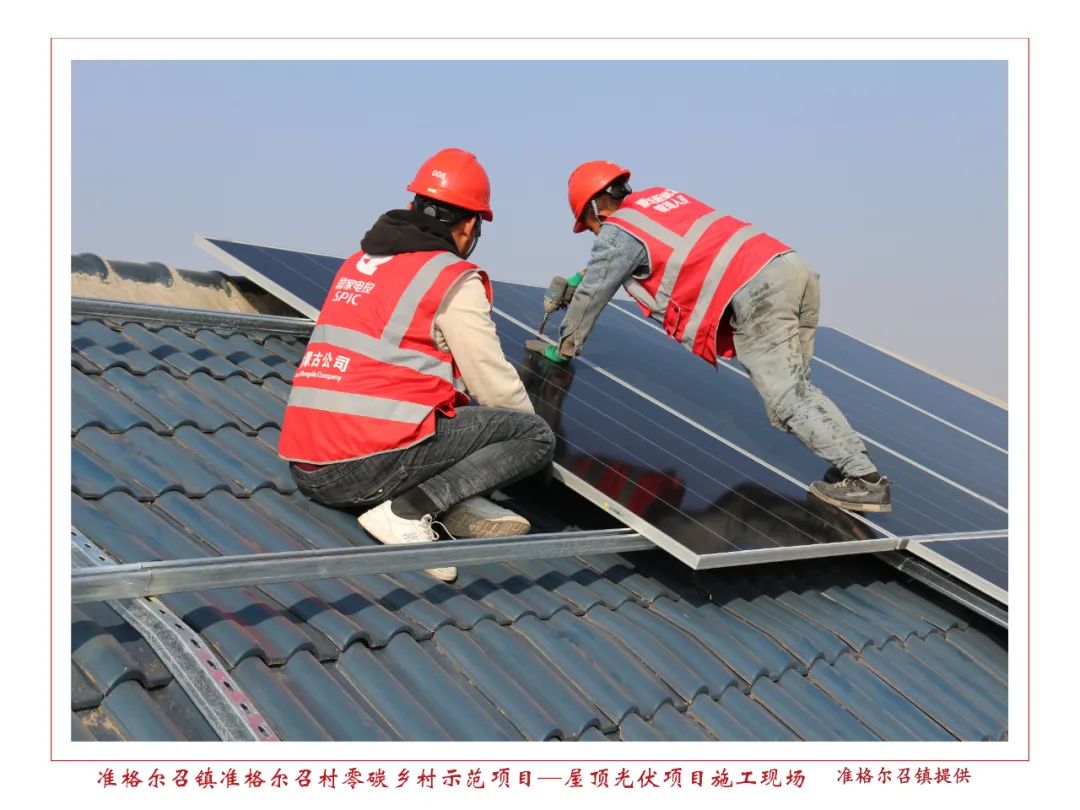 准格尔召镇准格尔召村零碳乡村示范项目——屋顶光伏项目充分利用全村居民屋顶,建设8.5MW分布式光伏电站,年发电量可达1200万度,每年可节约标准煤4488吨,实现二氧化碳减排1.36万吨。项目利用清洁能源供暖取代全村散煤取暖,实现“清洁能源+乡村振兴”融合发展,发电自用,余电就近消纳。