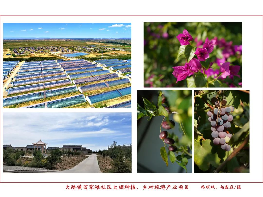 大路镇苗家滩社区大棚种植、乡村旅游产业项目是集大棚采摘、养殖、民宿旅游为一体的综合产业项目。社区有水浇耕地198亩,果树2.7万株,高标准温室大棚124栋,瓜果蔬菜应有尽有;养殖棚圈56套。