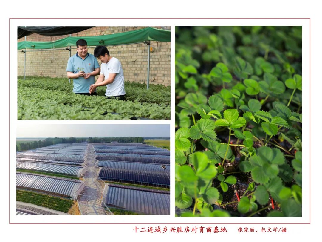 十二连城乡兴胜店村育苗基地是兴胜店村将150亩寸草不生的盐碱地流转整合后建成的35栋高标准化日光温室大棚,以产业化模式经营,成功引进江苏淮安柴米河农业科技公司共同打造村集体育苗基地。目前已成功培育出适合当地气候、土壤的草莓、甜瓜等种苗,市场供不应求。