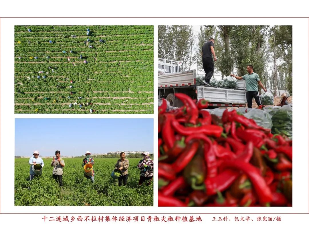 十二连城乡西不拉村以整合土地的模式集中种植青尖椒,依托合作社运营,发展村集体经济、助力农户增收,所产青尖椒远销区内外。