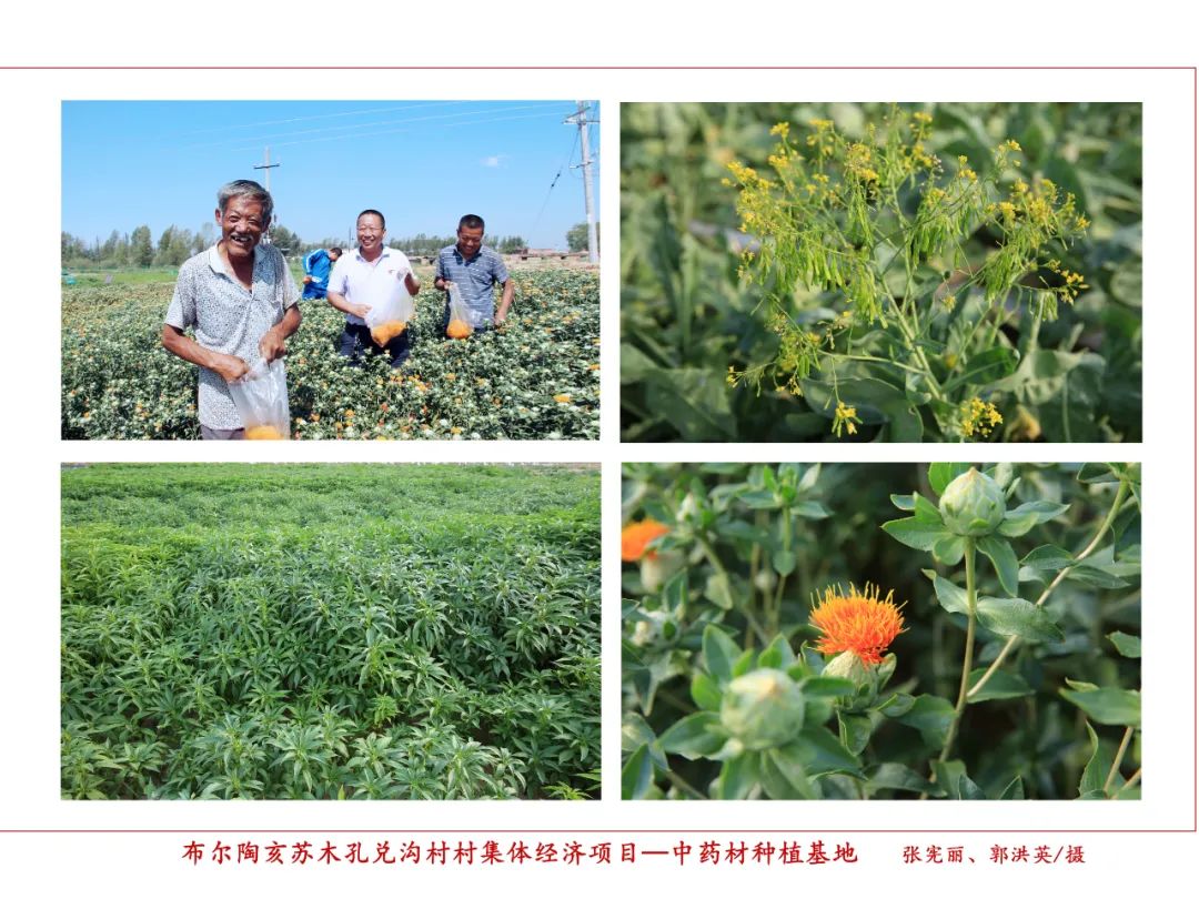 布尔陶亥苏木孔兑沟村集体经济项目——中药材种植基地由废旧砖厂重新开发,复垦整合流转土地后以“企业+党支部+合作组织+农户(贫困户)”的产业模式发展,增加了村集体经济收入。