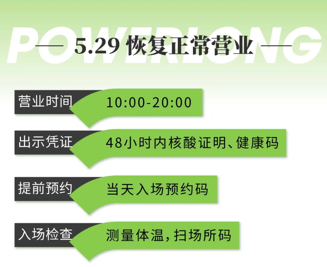随着上海复商复市的推进,青浦已复工的三家购物中心内更多商铺将陆续恢复营业。目前,为遵守防控要求,各家购物中心均实行提前预约制入店,市民在进店之前,需先使用购物中心微信公众号和小程序等开展线上预约。入店时,须出示48小时内核酸检测阴性证明、扫码测温,严格佩戴口罩,做好各项防控措施,方可入店购物。