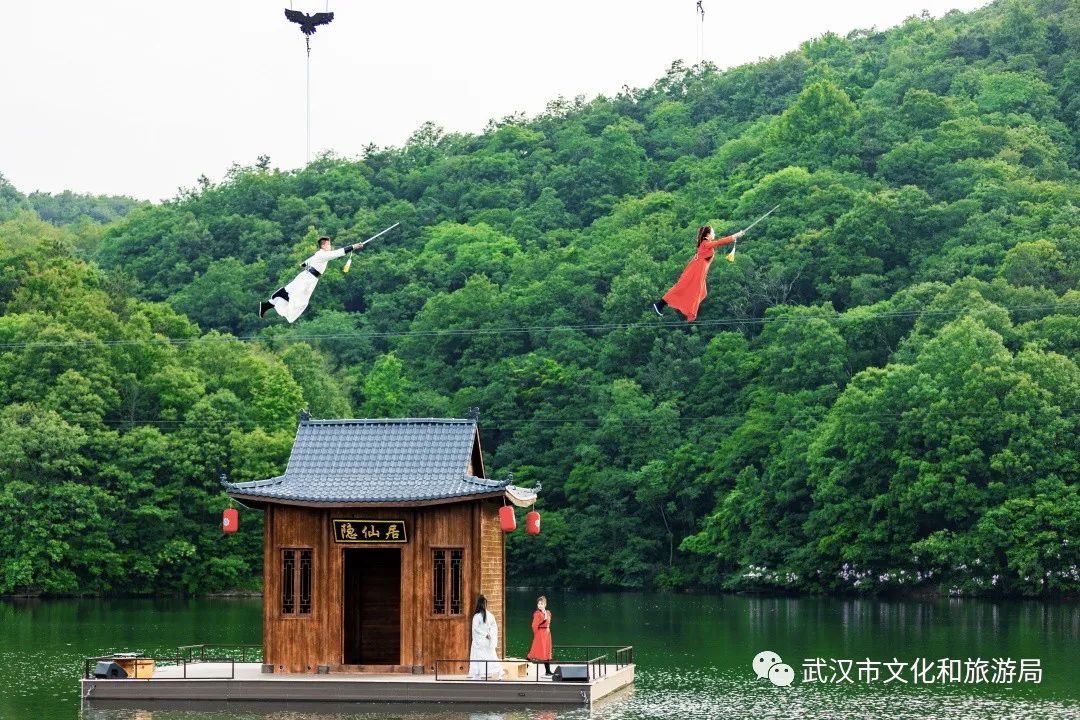 看完演出,武侠细胞被唤醒。在此就能体验景区特意推出的项目「天池飞仙」!吊上威亚自己尝试同款水上漂、空中旋转,我从小看武侠剧的"轻功梦"终于圆满了!