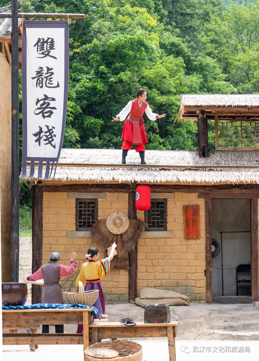 湖中央的古风木屋让人挪不开眼,正疑惑着它的用处,突然从湖两侧飞来了一袭红衣与白衣的两人,他们腾空翻滚、论剑,落在屋前。这架势还以为玉娇龙和李慕白来了。转头四处寻找隐藏摄像机,原来真不是在拍摄武侠大片呢!