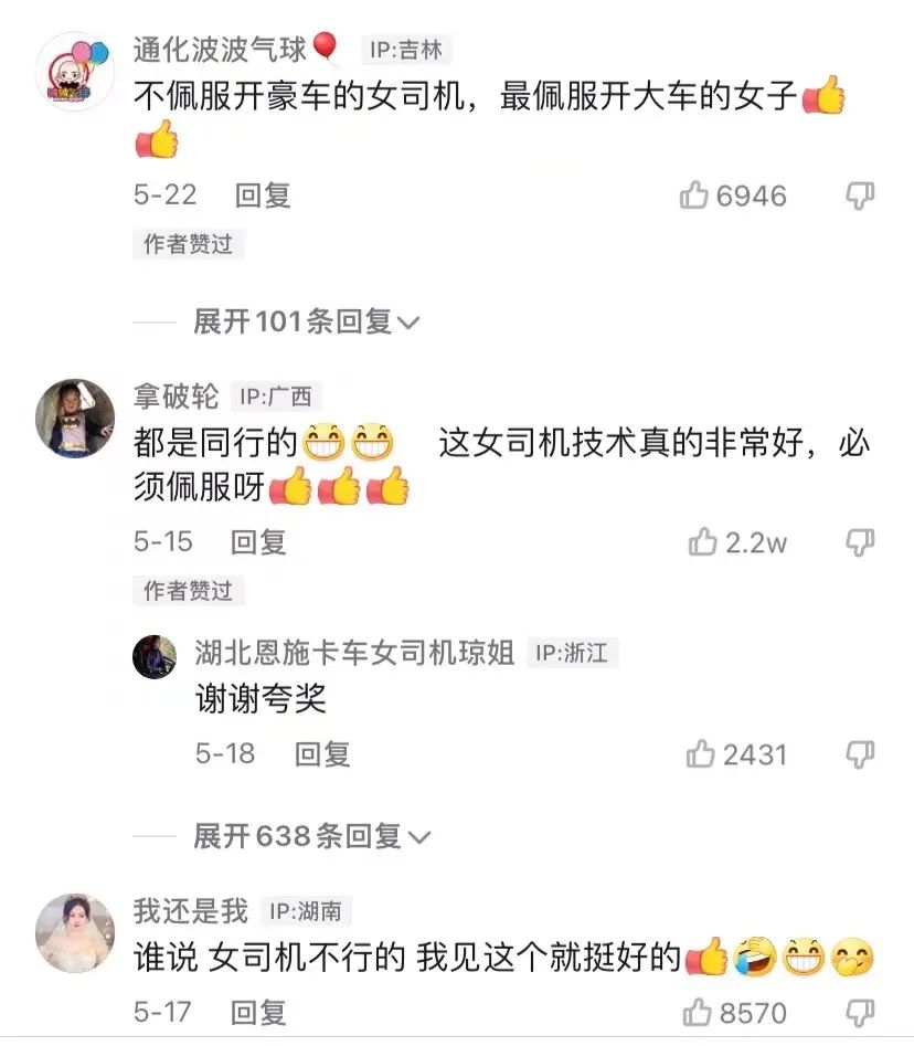 浙江温州车队的卡车司机琼姐没想到,随手拍的一个倒车视频突然就让自己成了抖音网红。截至目前,这条在她看来只算平常的倒车视频,却在抖音平台上收获了150多万个点赞,而她的粉丝数也超过了35万。网友们纷纷评论 “谁说女司机技术不行?琼姐的技术让人佩服!”“真是巾帼不让须眉!”