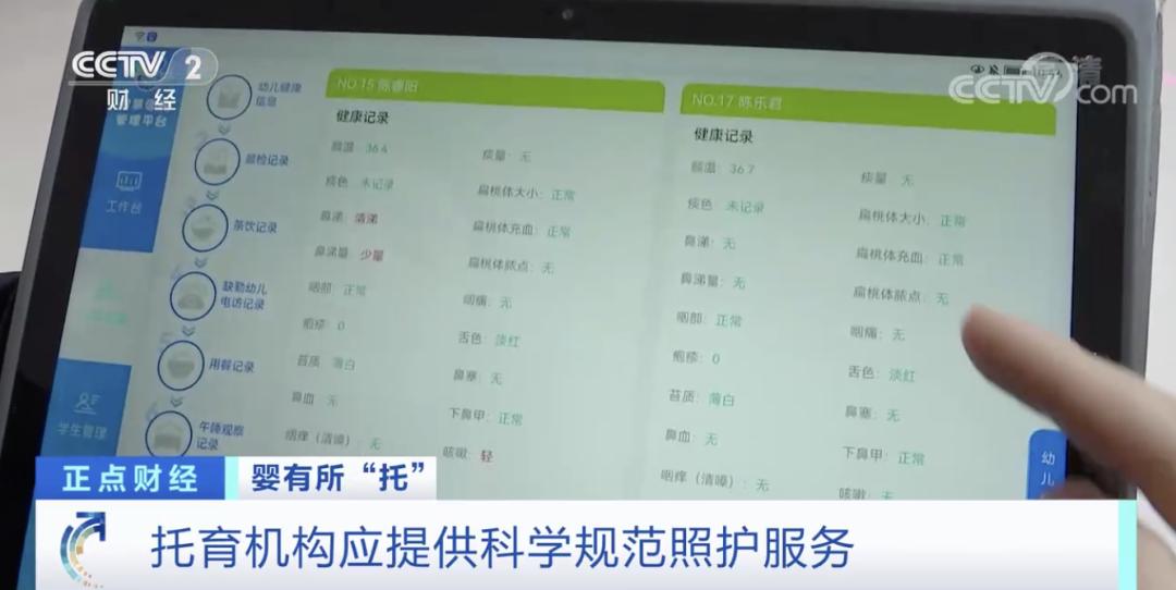 福建省国资教育(东街)托育园是福建首批省级普惠托育示范点。在这里,从早上入园晨检开始,孩子的体温等数据就进入互联网系统,保育师可以在平板电脑上看到,并且记录孩子的饭量、精神状况等,并通过App向家长发送每日报告。