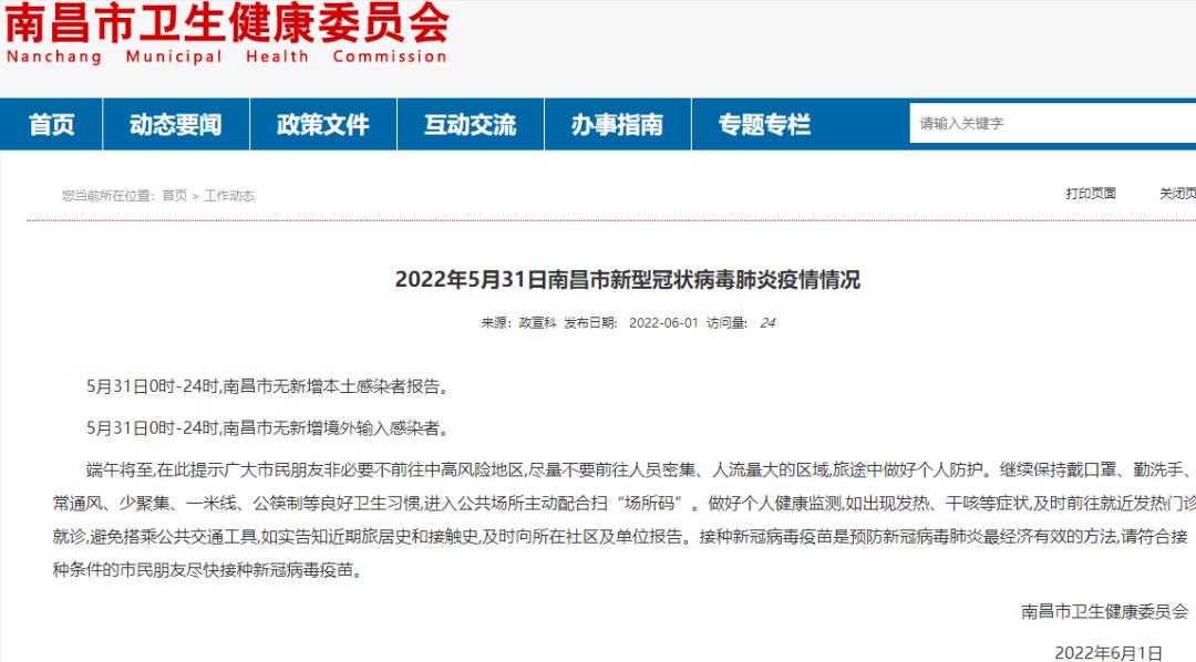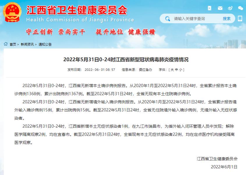 原标题:《2022年5月31日江西省、南昌市新型冠状病毒肺炎疫情情况》