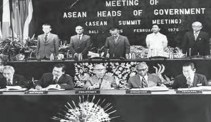 1976年2月,东盟成员国领导人在巴厘岛举行首次峰会,并取得两项主要成果,即《东盟协调一致宣言》(或称《巴厘宣言》)和《东南亚友好合作条约》。