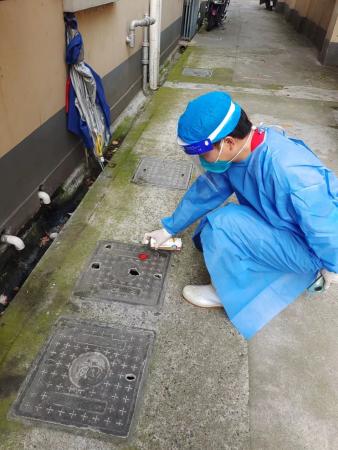 目前,凌云街道辖区内的病媒防制工作正在开展,街道除害服务站和第三方专业机构工作人员一分为二,除了一半仍旧投入疫情消杀工作中外,另一半工作人员已经在各居民区设置捕蝇笼、毒鼠房,喷洒药水、投放灭幼缓释剂等等。