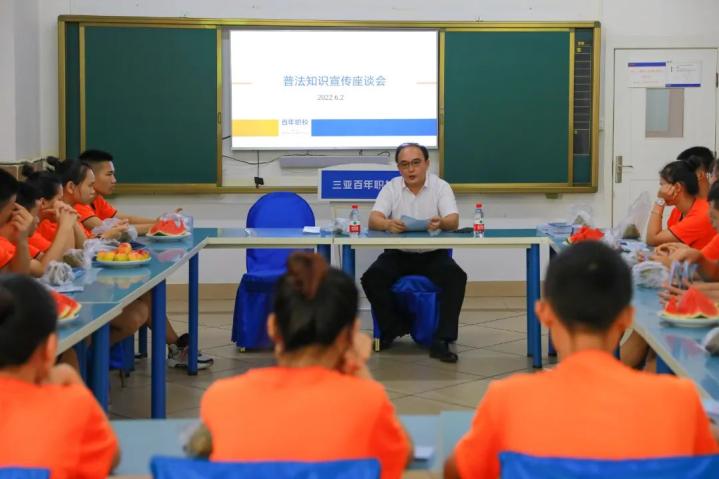 为进一步增强中小学生法治理念和法治意识,切实预防和减少青少年犯罪,维护未成年人合法权益,营造良好的法治氛围,在“六一”儿童节到来之际,三亚城郊法院党组成员、副院长林芳翊带领刑事审判庭的干警们走进三亚百年农工子弟职业学校,为学生们送上了节日的“法律大礼包”。