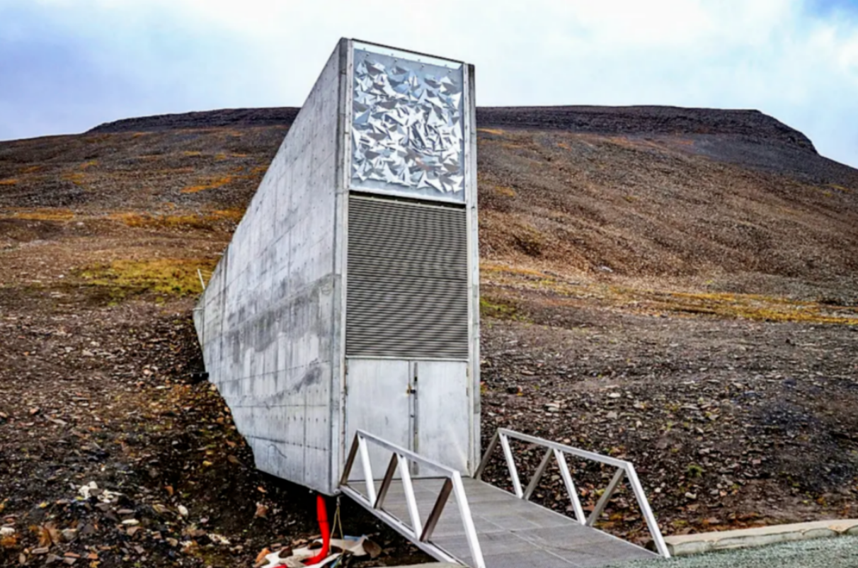 挪威政府在斯瓦尔巴群岛上建造了一个巨大的斯瓦尔巴全球种子库(Svalbard International Seed Vault),号称“末日粮仓”。“末日粮仓”建造在北极附近、滨临北冰洋的斯瓦尔巴群岛冻土地带(距北极1000公里)的岩石山洞中。那里不易受外界气温变化影响,即使在断电状态下也能使种子处于低温环境中,适宜种子的储藏。地窖建有1公尺厚的水泥壁,有2个气闸舱及安全性极高的防弹门,以保护种子银行。“粮仓”高度是经过仔细推敲过后的“安全高度”,约海拔130公尺高,即使格陵兰冰原全部融化也不会危及种子库。据称,“末日粮仓”被用于储藏地球作物的450万种种子样本,以防环境变化或一旦发生毁灭性灾难导致这些作物物种灭绝,确保人类食物的来源和多样性。