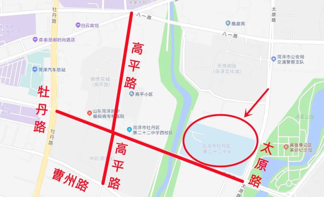 牡丹区二十二中考点附近:市丹阳路的牡丹路路口至太原路路口、市高平路的八一路路口至曹州路路口为管制路段。