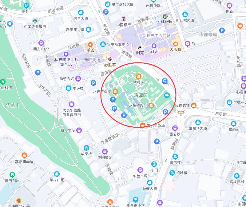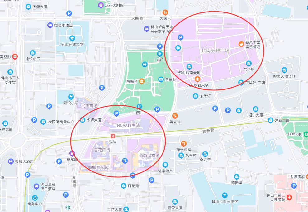祖庙路、人民路、建新路,季华商圈的季华四路至季华六路、汾江中路、汾江南路、佛山大道中,东方广场片区的河滨路、南堤路。