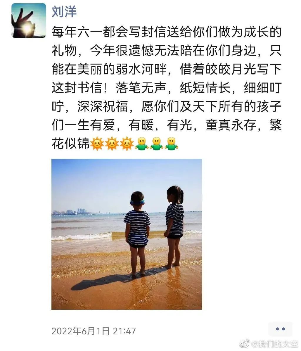 “六一”送祝福,刘洋更新朋友圈