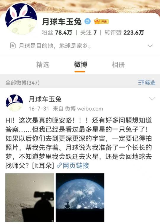 而现在的月球上,也有“看过最多星星的一只兔子”在沉睡。