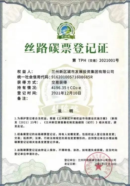 丝路碳票登记证(受访者供图)