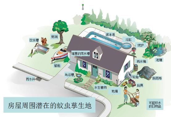 积水是蚊虫孳生的主要原因,家庭环境中蚊虫容易孳生在水生植物容器、空调下积水托盘、屋顶雨水槽、浴缸、玩具、雨布和塑料布、瓶、罐、缸、动物饮水器具、鸟浴槽等,及时清除容器内的积水可以有效将蚊虫扼杀在摇篮里。可以清除的积水应倒掉或者每隔一周更换容器内积水,盛水容器加盖,暂时不用的容器应口朝下倒置,在水生植物盆内养鱼等措施均可以有效防止蚊幼孳生。