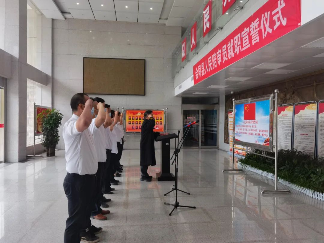 6月6日上午,会同县人民法院举行2022年新任人民陪审员就职宣誓仪式暨岗前培训。副院长袁仕友,党组成员、政治部主任张小军出席,会同县十八届人大常委会第三次会议任命的9名人民陪审员参加。