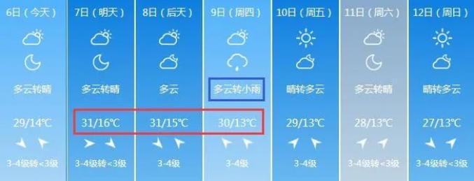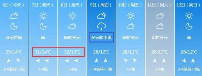 6月7日白天到夜间:全省晴天间多云,有4级左右、短时6级或以上西南风;北中部部分地区有分散性阵雨或雷阵雨;南部部分地区有干热风。最高气温:全省27~35℃;最低气温:北部及中南部山区8~15℃,中南部其余地区15~19℃。