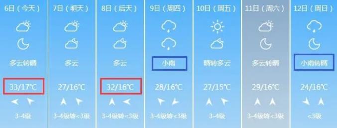周三:晴转多云,东部局部地区有阵雨或雷阵雨;临运盆地的部分地区有35℃或以上的高温天气。