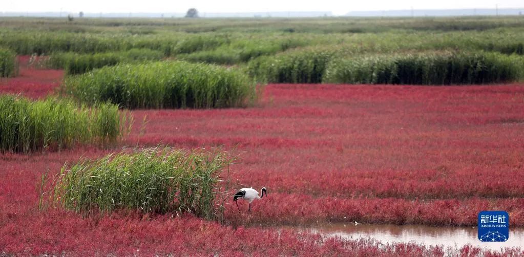 图为辽河入海口旁特有的红海滩 图/新华社