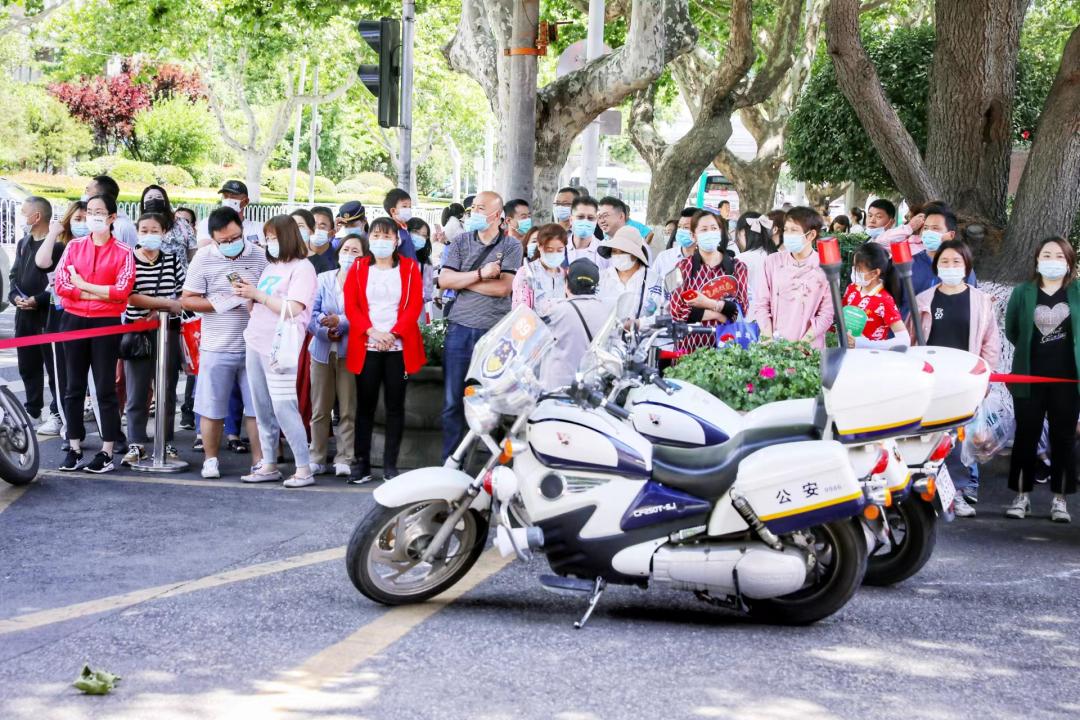 青岛58中门口等候的家长。半岛全媒体记者 吴璟 摄