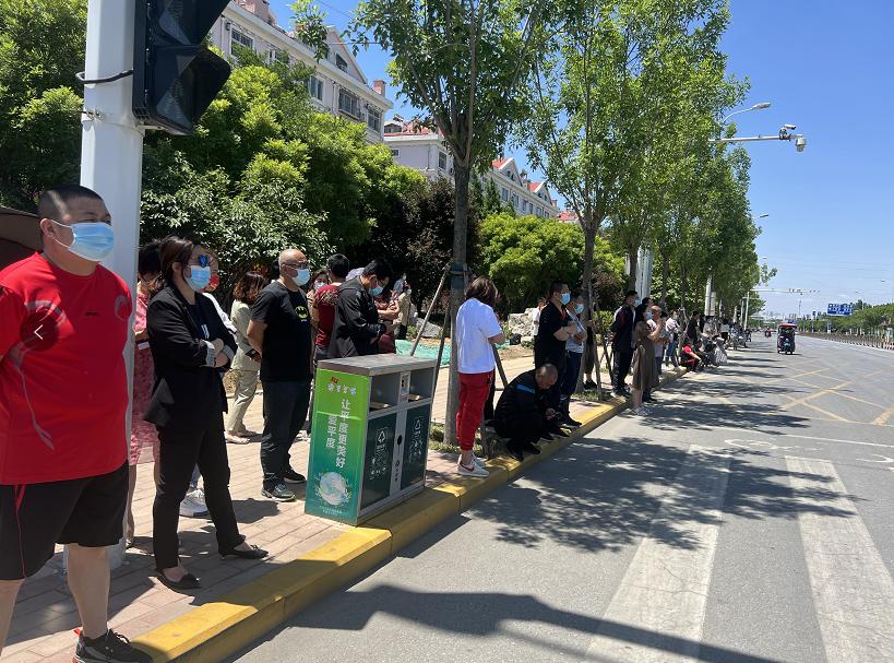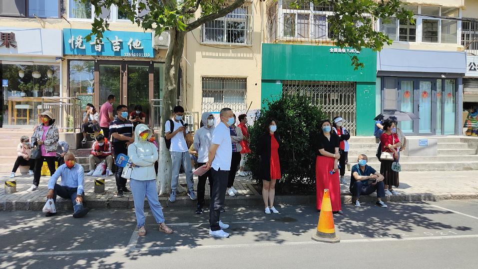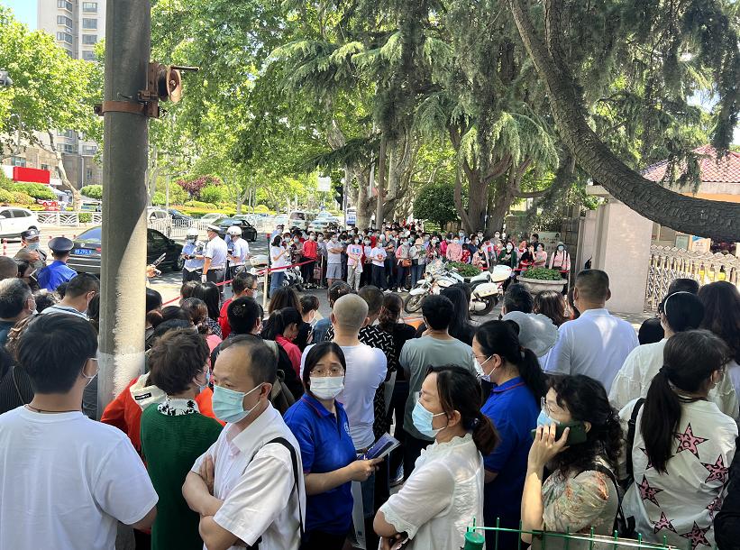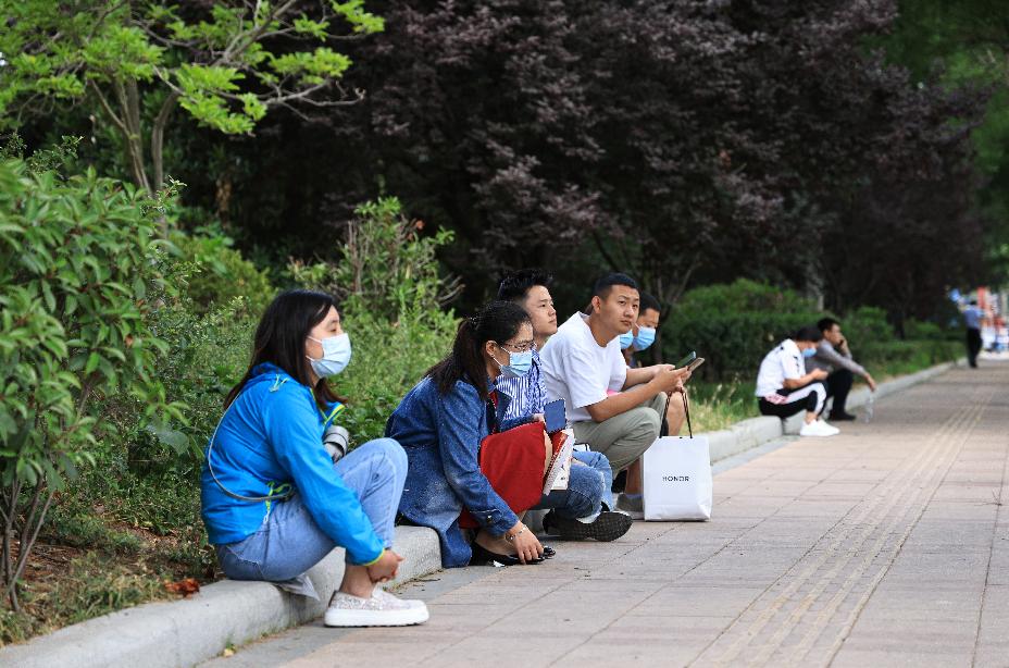 城阳二中考点外,家长们焦急地等待。 半岛全媒体记者 张彤 摄