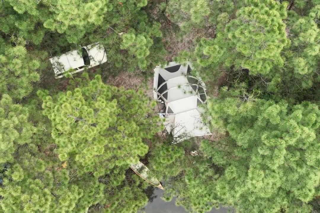 树线松林湖露营地是我建设的第三个营地,也是第一个针对成熟户外玩家的营地。营地坐落于安吉北部的一片松林中,因为早年北欧求学的经历让我对松林很有感情,2021年5月第一次来到这里之后,我便决定在此做一个快乐、自由、浪漫的营地。