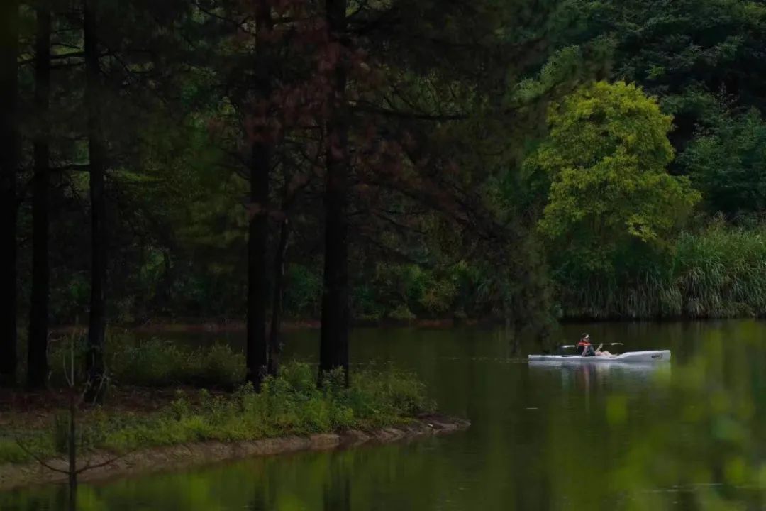 湖边的公共社交区还有一个72人Tentipi大帐篷,会不定期举办一些非常有意思的户外活动。营地内有固定停车位,也有Autocamp营位,可以直接将车辆停放在帐篷边。还记得刚才提到的那片湖水吗?大家在露营之余可以玩sup、独木舟、皮划艇……湖对岸还有未开发的区域,可以在竹林里探索,春天还体验挖笋。