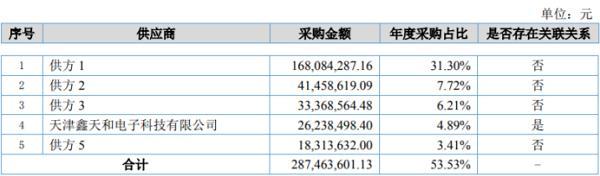 欧晶科技相同报告期内主要财务数据的差异还体现在客户和供应商信息及数据方面,如2018年对无锡中环应用材料有限公司的销售数据相差37.31万元;招股书披露2017年和2018对第一大供应商北京雅博的采购额分别为11147.65万元、14364.02万元,而股转系统虽然没有披露第一大供应商名字,却披露对第一大供应商的采购额分别为13042.75万元、16808.43万元,金额分别相差达1895.10万元、2444.41万元。