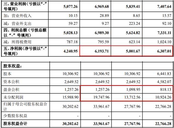 2017年至2019年,欧晶科技各期净利润分别为6307.01万元、5001.67万元、6193.71万元,未分配利润分别为10924.26万元、13712.56万元、19747.96万元,盈余公积分别为818.13万元、1098.95万元、1257.26万元。