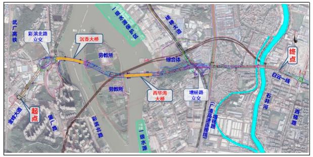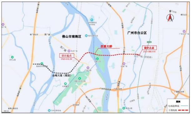 项目设计资料显示,沉香大桥呈东西走向,依次经过佛山南海区里水镇和广州白云区,是连接广州西北部和佛山的重要道路。