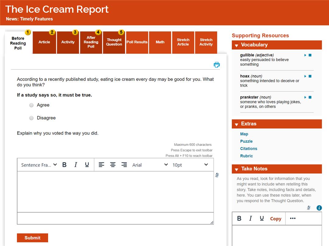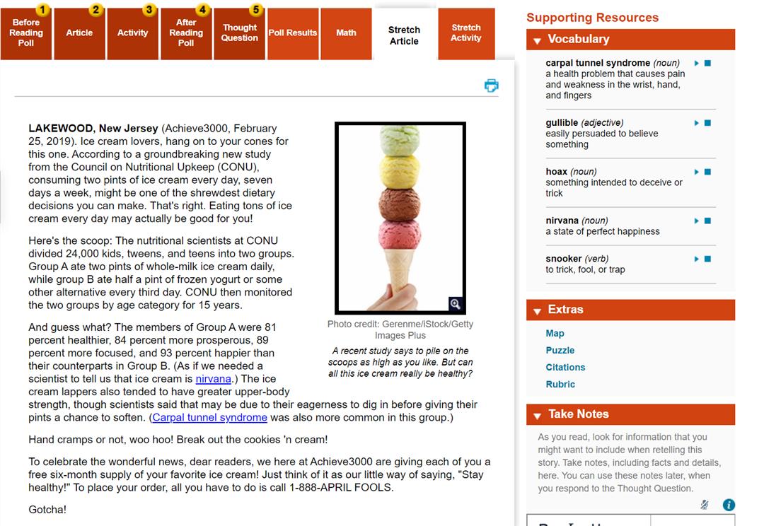 所以他目前的非虚构阅读就很难进入上面说的这个阶段,怎么办呢?我决定让他继续“杂食”下去,选择了Achieve3000,作为补充阅读。