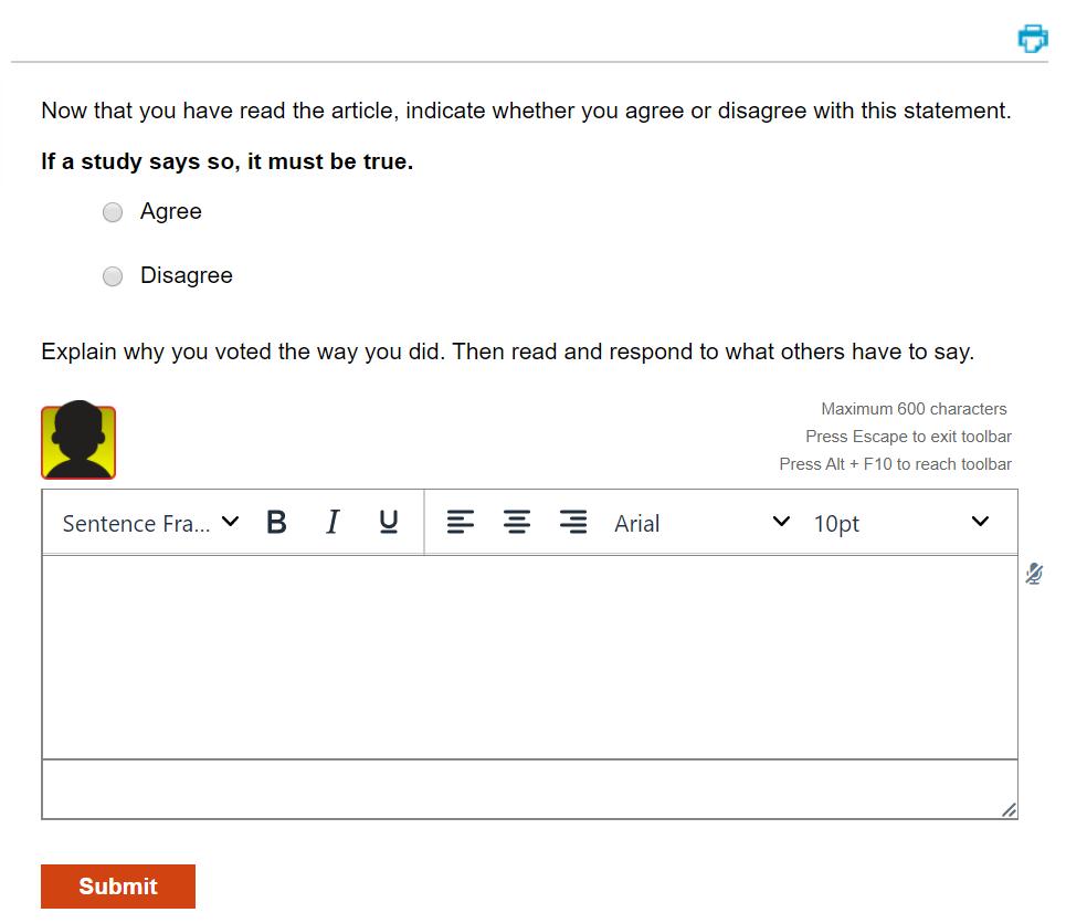 在开始阅读之前就要求就某一问题进行思考并投票,而且在下面还能看到其他同学写的投票理由。