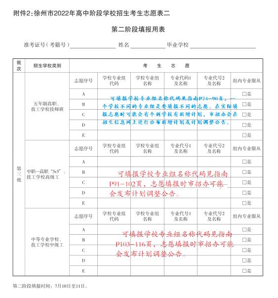第二阶段填报第三批次招生学校志愿,面向未被录取的学生填报志愿,填报时间为7月10日至11日。填报本批次第1小批志愿但未被录取的考生可于7月15日填报第1小批征求志愿;填报本批次第2小批志愿但未被录取的考生可于7月19日填报第2小批征求志愿。第三批次招生学校志愿及征求志愿由考生凭“口令卡”在网上填报并提交后志愿即可生效,不再进行签字确认。具体填报时间见考生“口令卡”。