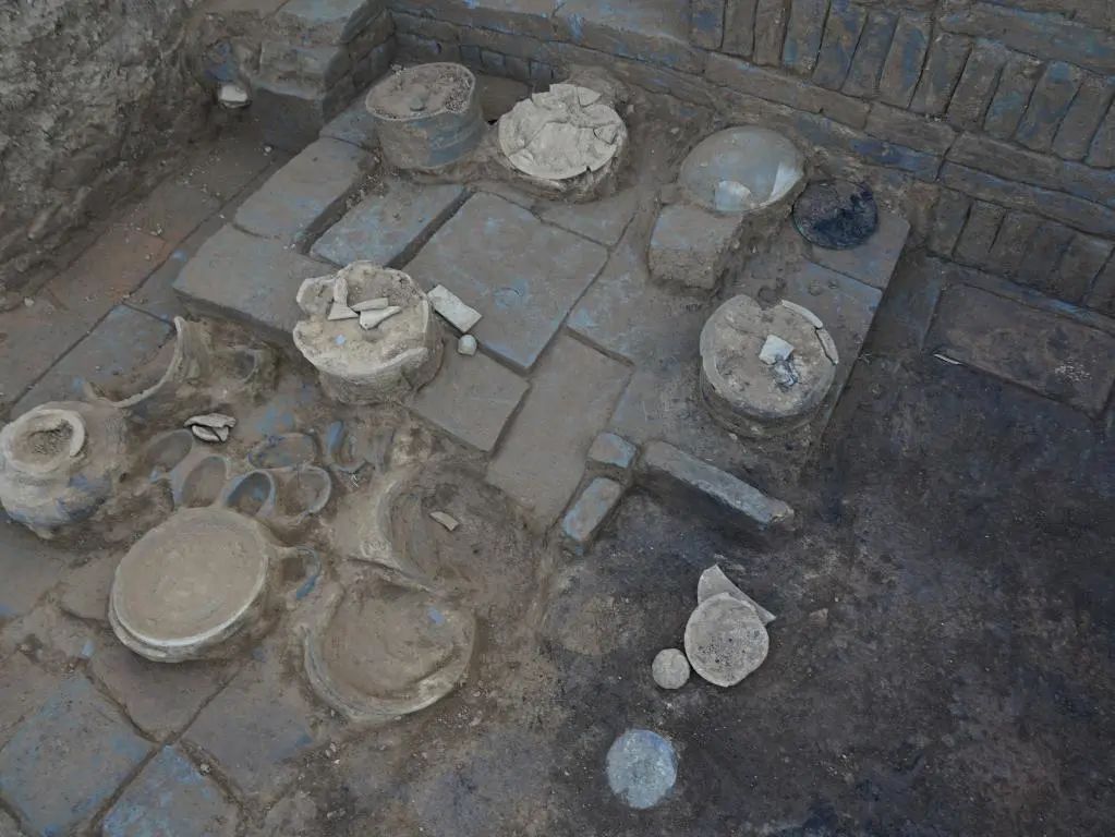 一处东汉墓葬内的墓室地面文物。图片来源:天津市文化遗产保护中心